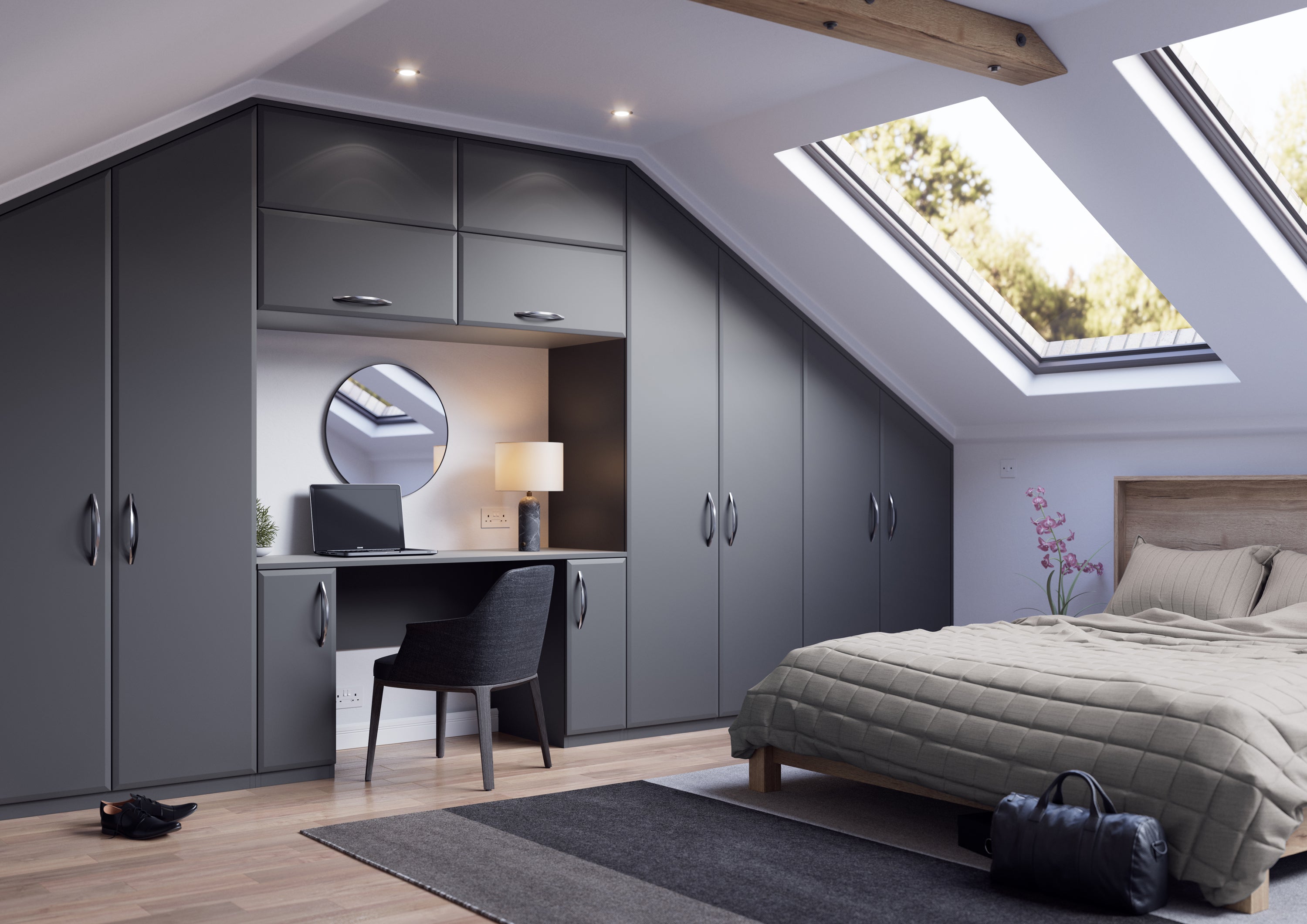 Experience the ultimate in sleek and modern design with Alice Matt - the perfect made-to-measure door for transforming any space. Its customisable design ensures a perfect fit for your unique style and will elevate your home decor. Discover the Alice Matt now. Lifestyle image is Super Matt Graphite.