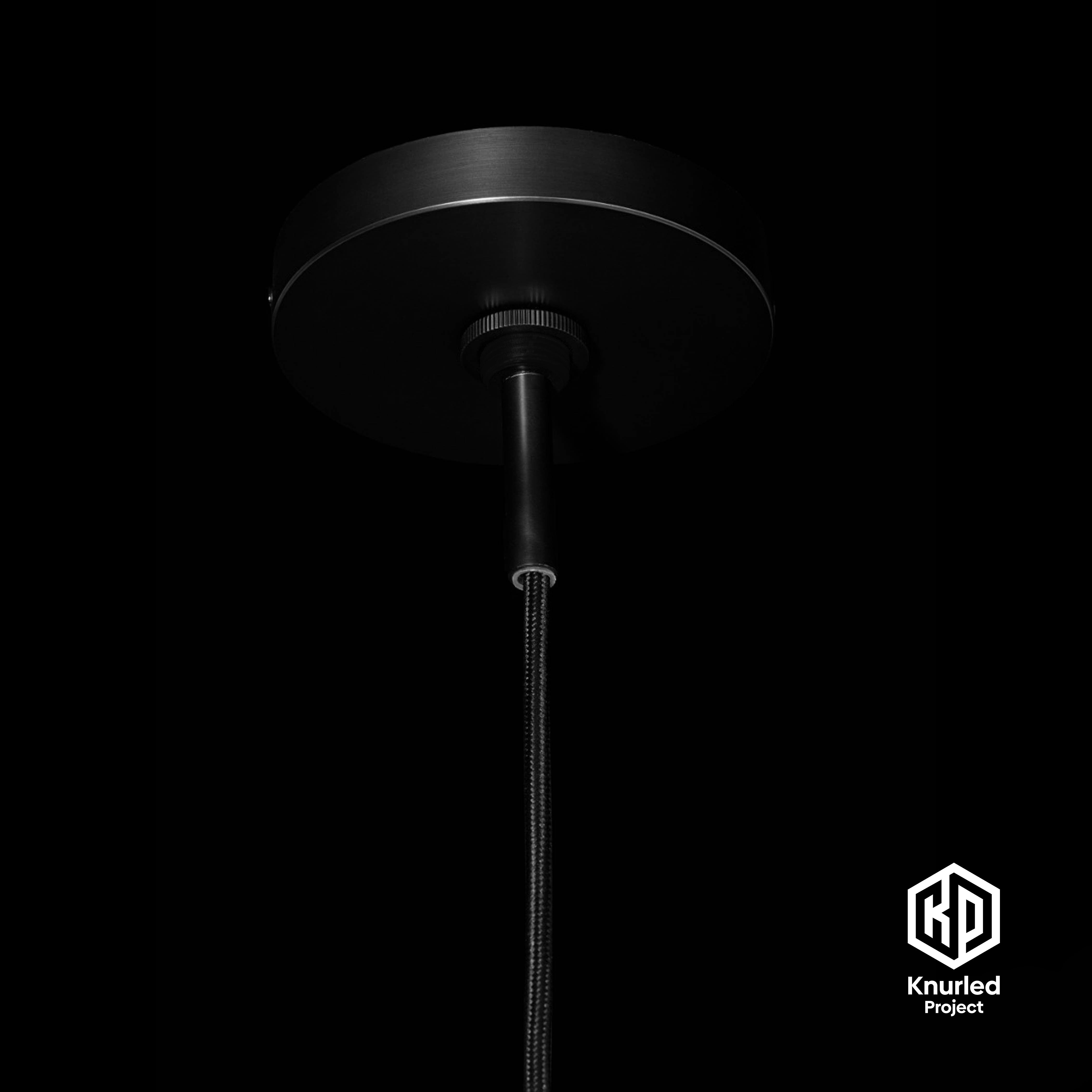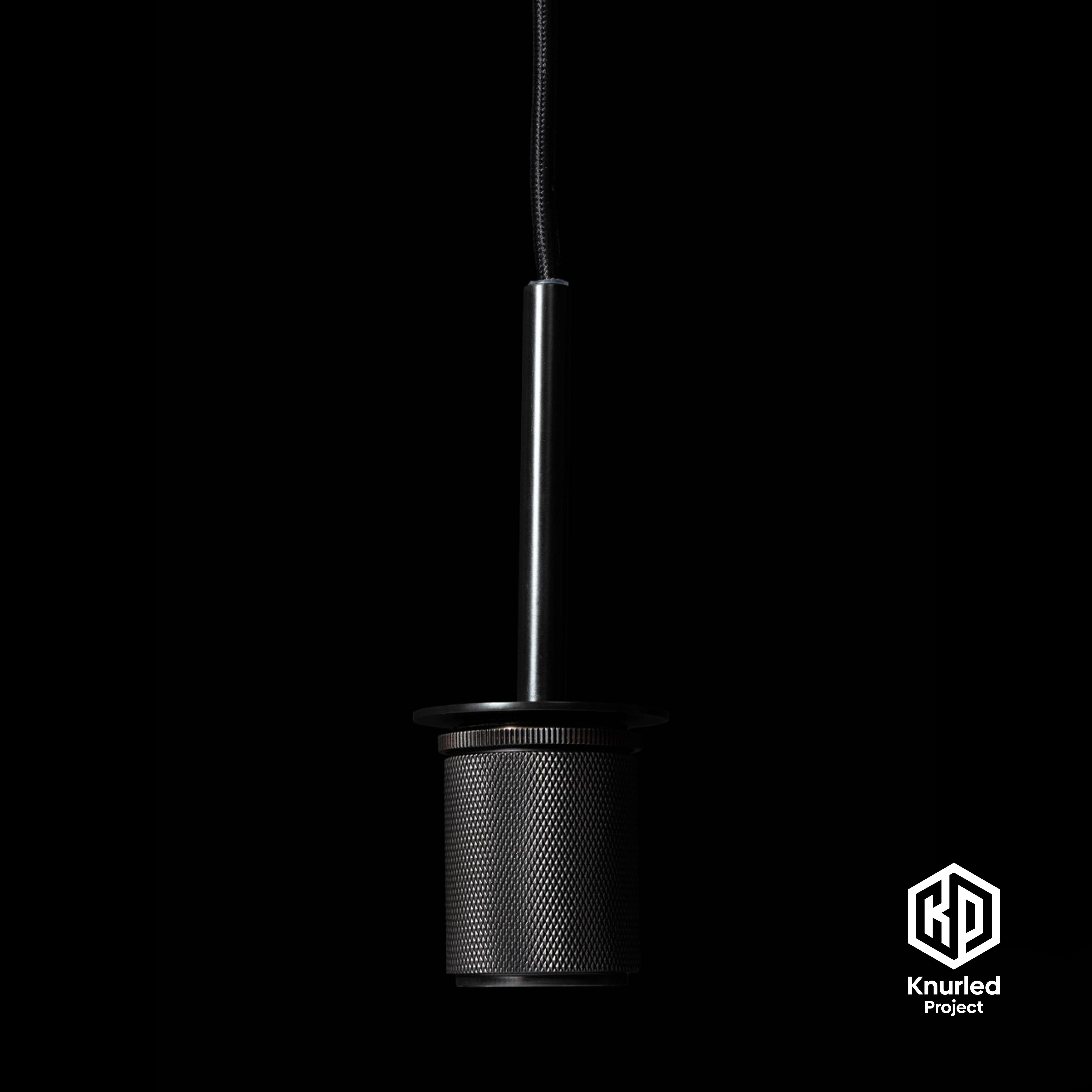 A Pendant Light hanging from the ceiling, which belongs to our solid Matte Black Brass range, which flaunts our diamond-cut, knurling design.