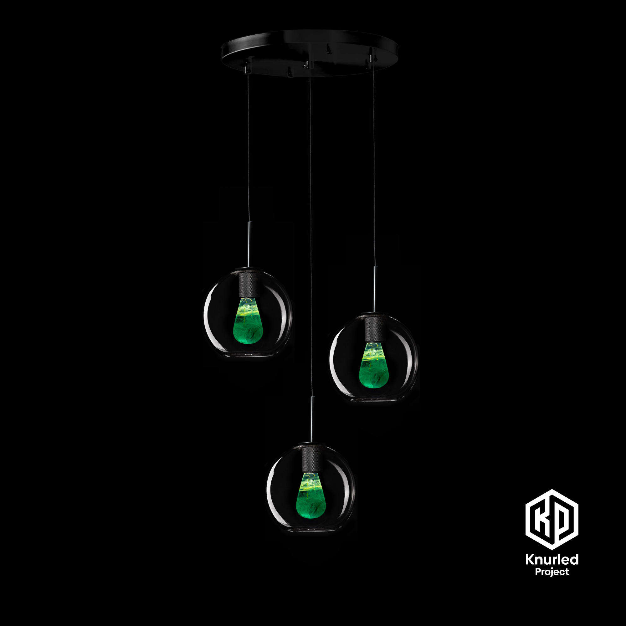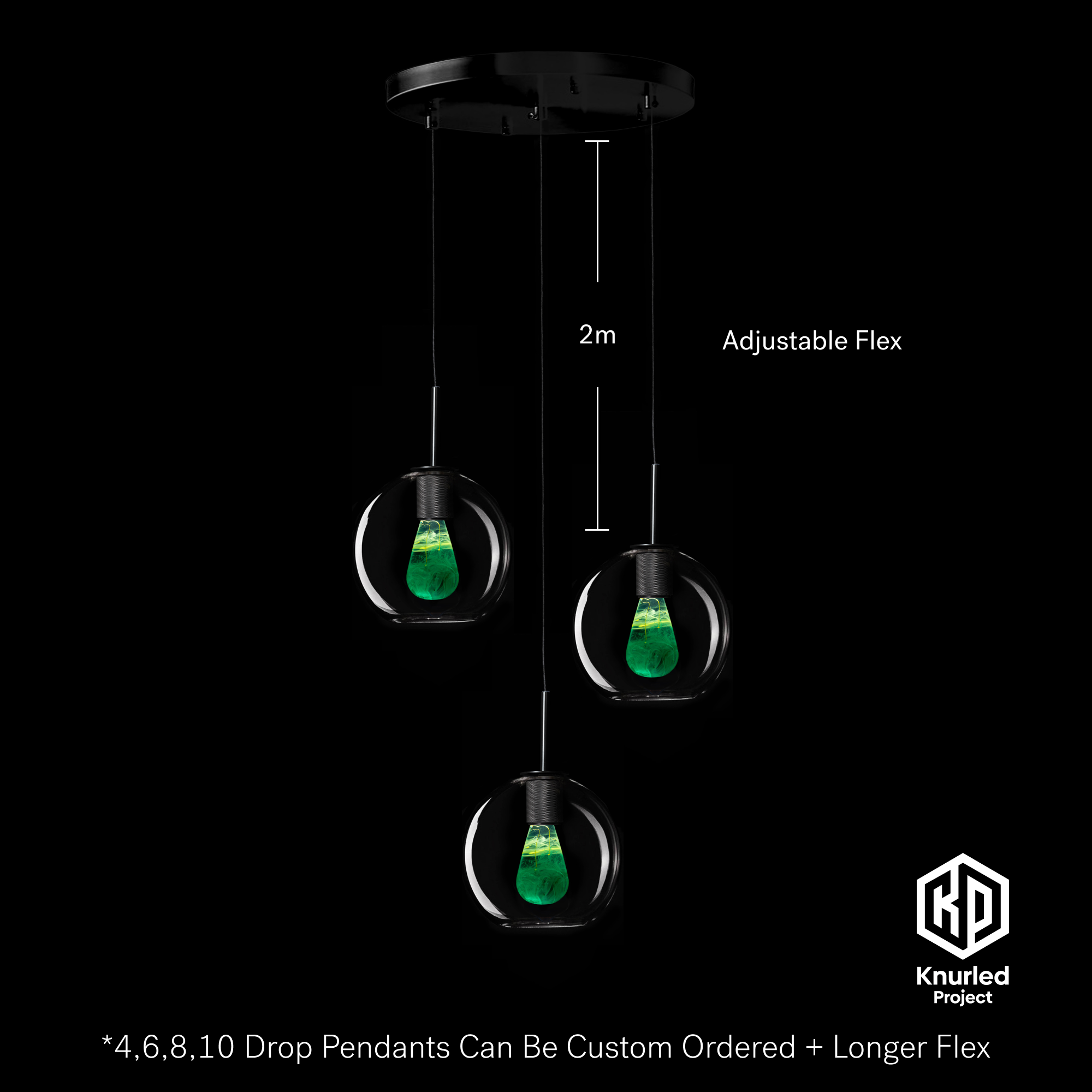 Matte Black 3 Drop + Cryptonite Mood Bulbs + Globe Shade