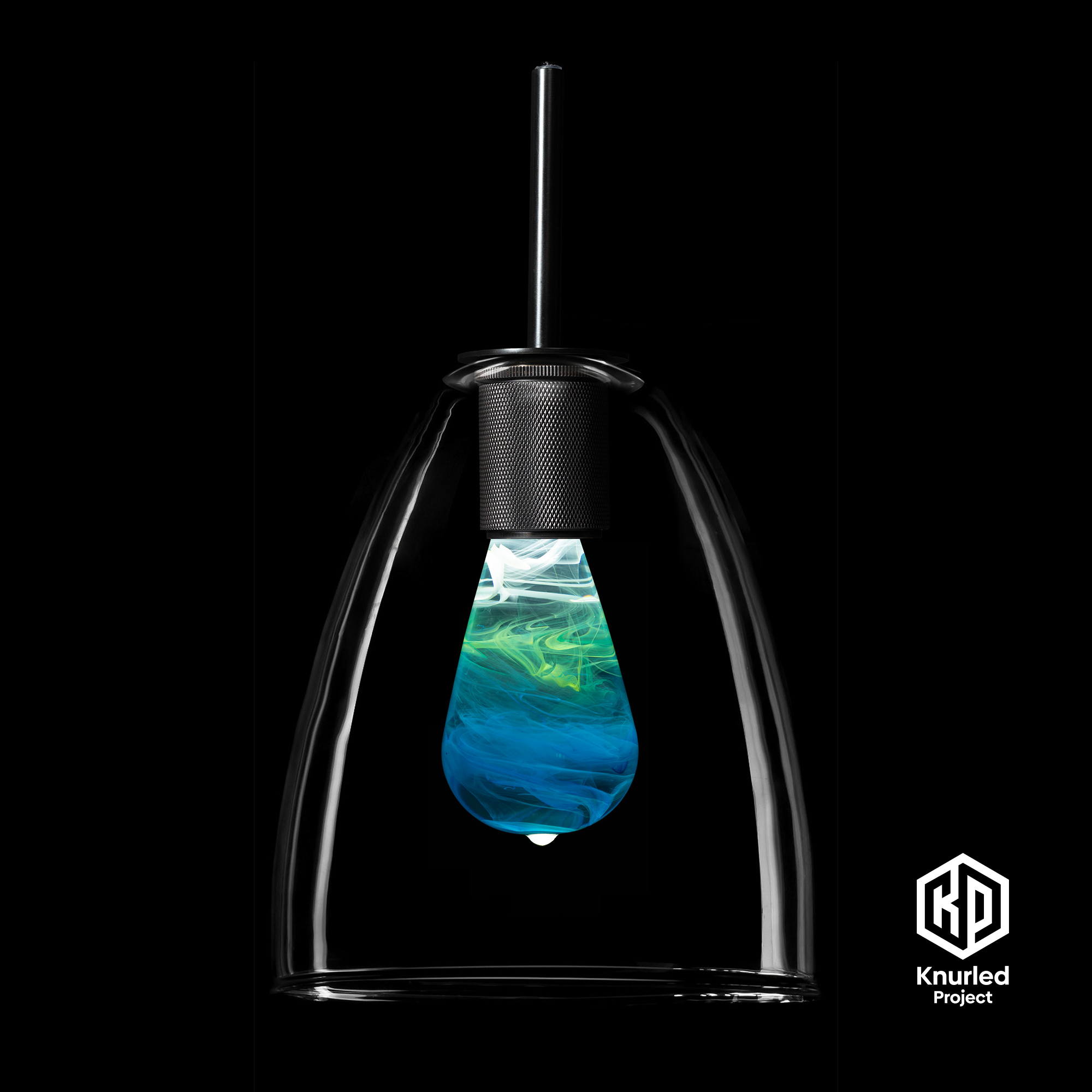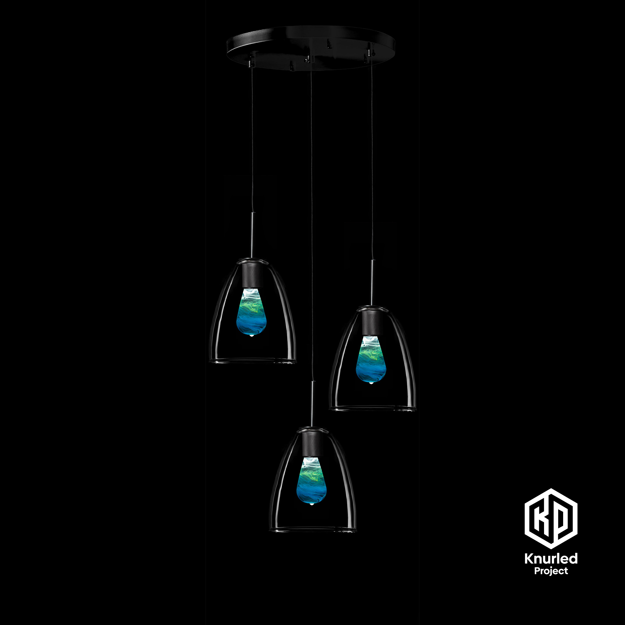 Matte Black 3 Drop + Ripple Mood Bulbs + Bell Shade