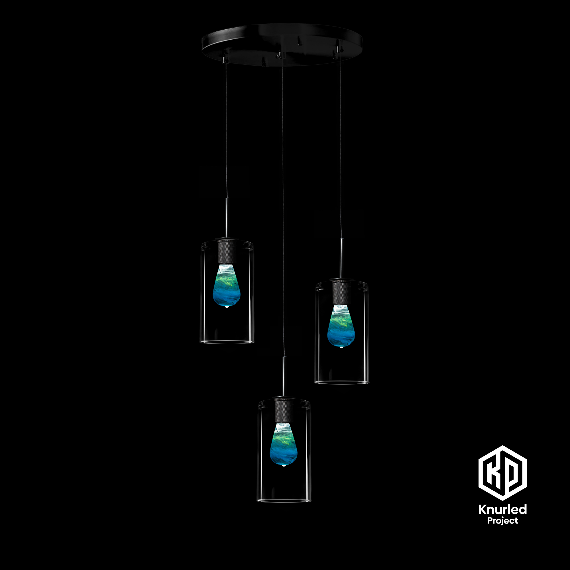 Matte Black 3 Drop + Ripple Mood Bulbs + Cylinder Shade